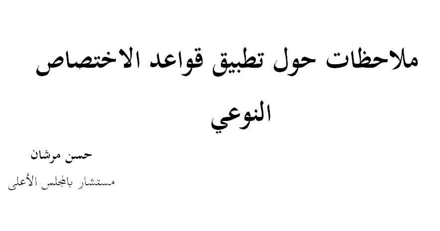 ملاحظات حول تطبيق قواعد الاختصاص النوعي حسن مرشان مستشار بالمجلس الأعلى