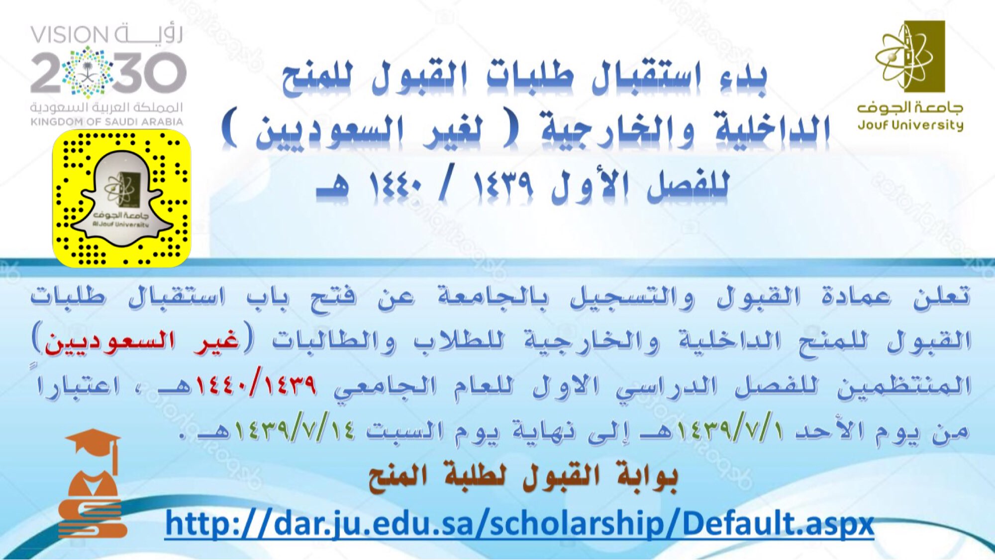 جامعة الجوف On Twitter جامعة الجوف تفتح القبول للمنح الداخلية والخارجية لغير السعوديين Https T Co Kyzxbofcb6
