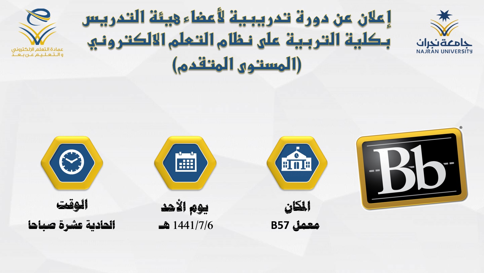 إعلان عن دورة تدريبية لأعضاء هيئة التدريس بكلية التربية على نظام التعلم الالكتروني المستوى المتقدم