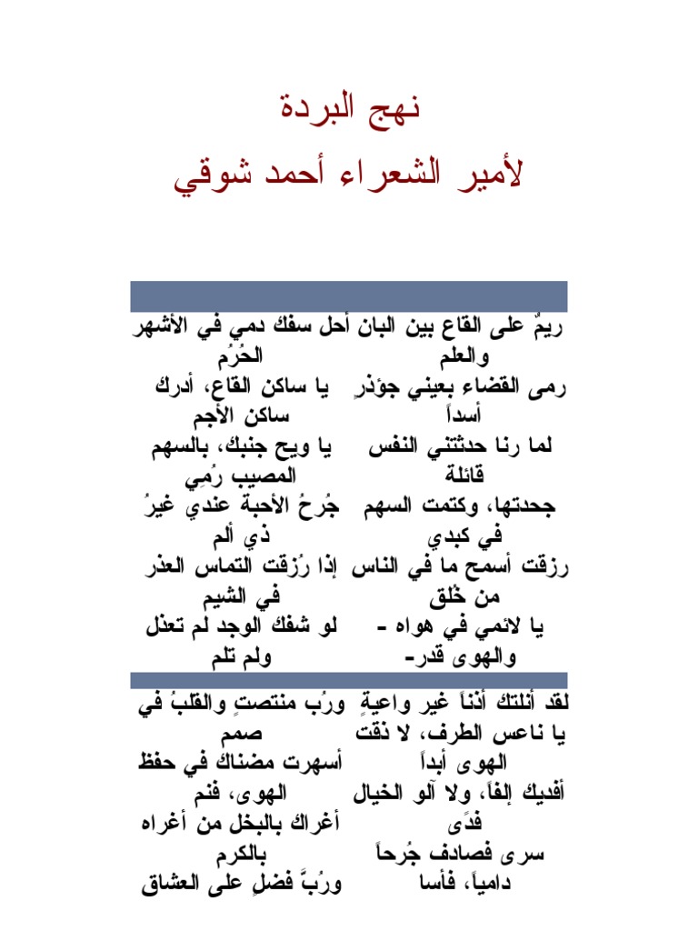 تحليل قصيدة نهج البردة لاحمد شوقي اللغة العربية تيزي وسلي Facebook