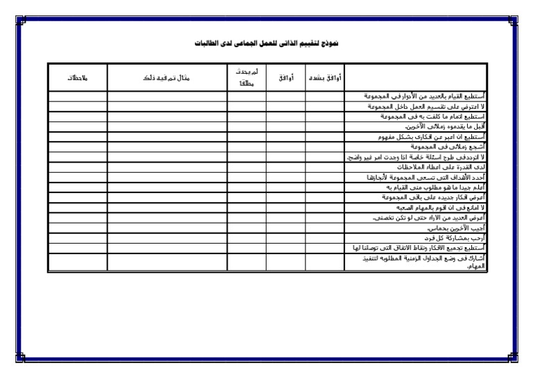 نموذج لتقيم الذاتي للطلاب